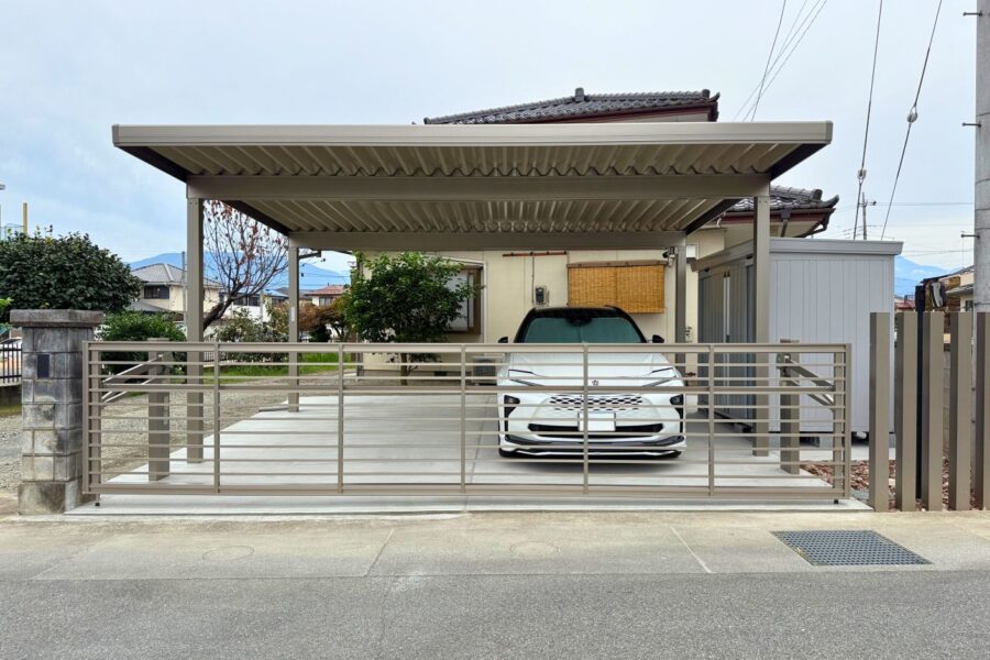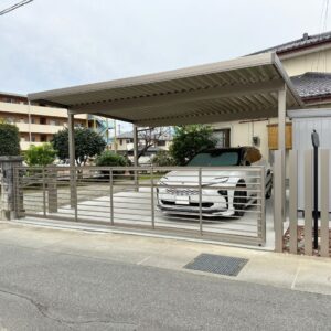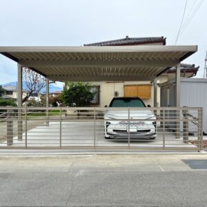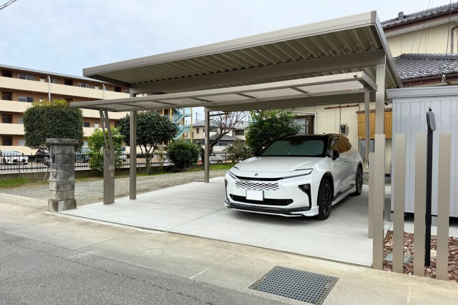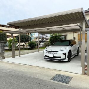 既存の駐車スペースは間口が狭く出入りが難しかったため、道路沿いの生垣を抜根して取り除き、土のままだった部分をコンクリート舗装にして2台分の駐車スペースにリフォームしました。